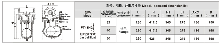 FT44杠桿浮球式蒸汽疏水閥用途特點