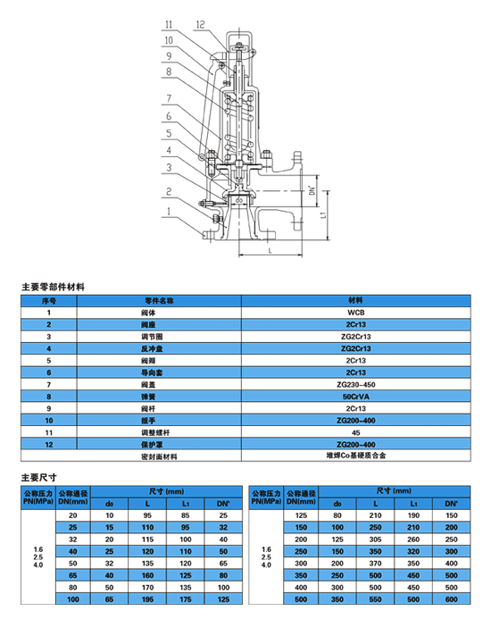 A48Y型高溫高壓安全閥適用于工作溫度≤350℃的蒸汽、空氣等介質的設備或管道上,作為超壓保護裝置,當設備或管道內壓力超過允許值時,閥門自動開啟,繼而全量排放,當壓力降至規定值時,閥門自動關閉,保證設備和管道的安全運行。A48Y、A48SH、A48SB、A48TH高溫高壓安全閥