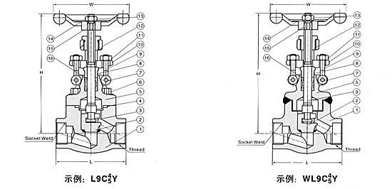 全徑或縮徑 明桿支架式(OS&Y) 自定心壓板壓套式 螺栓連接、纏繞墊片密封式閥蓋,螺紋連接、全焊密封式閥蓋以及螺紋連接內壓自緊式閥蓋 整體式上密封座 承插端符合ASME B16.11 螺紋連接端(NPT)符合ANSI/ASME B1.20.1 閥瓣可變換為節流型、針型、球型和止回型。