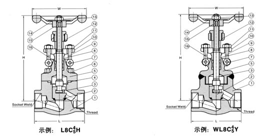 鍛鋼截止閥有三種蓋設計形式。第一種是螺栓式閥蓋,按這種設計形式設計的閥門,其閥體與閥蓋用螺栓螺母連接,纏繞式墊片(316夾柔性石墨制造)密封。客戶有特殊要求時也可采用金屬環連接。第二種設計形式是焊接式閥蓋,按這種設計形式的閥門,其閥體與閥蓋用螺紋連接,全焊密封?蛻粲刑厥庖髸r也可采用全焊透連接。第三種是壓力自緊式閥蓋,按這種設計形式設計的閥門,其閥體與閥蓋用螺紋連接,內壓自密環密封。 截止閥設計結構和特征 截止閥的設計與制造符合API602,BS5352和ASME B16.34。檢驗與測試按API 598,標記按MSS-SP-25。